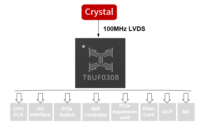 | TBUF0204 | 1.5V/1.8V/2.5V/3.3V | single-ended | LVCMOS | 200MHz | <50fs | 4 | -40℃~85℃ | SOIC8 |
